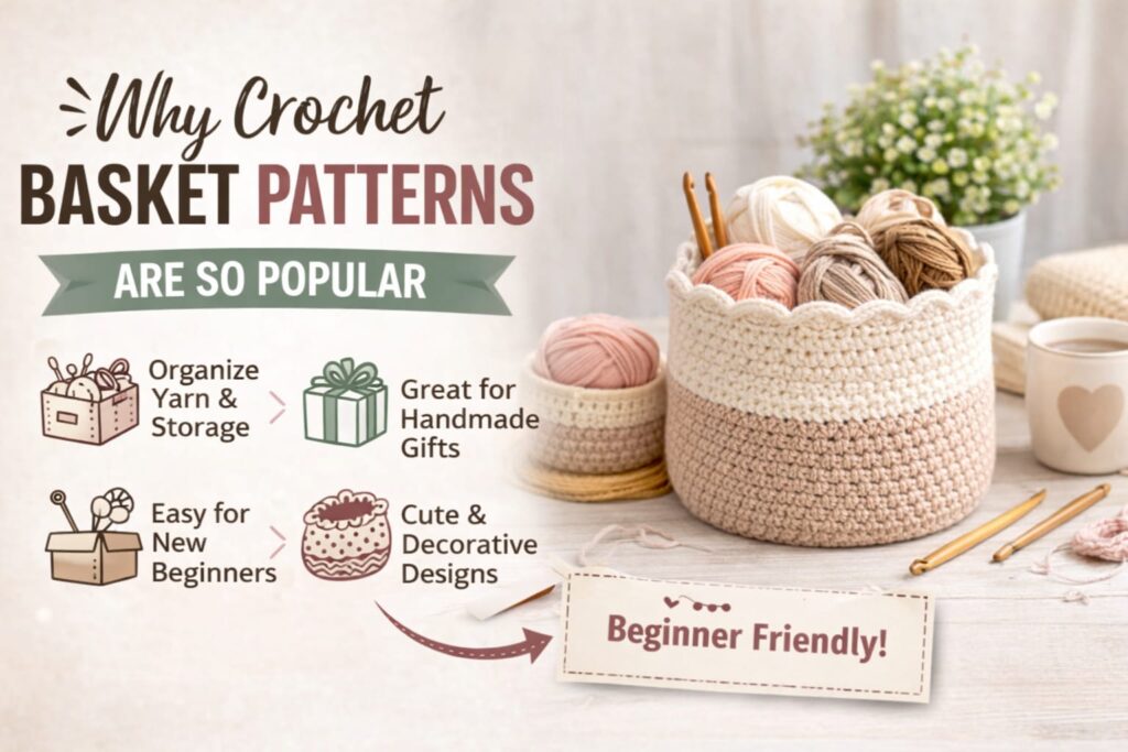 This crochet scalloped basket pattern is perfect for beginners who want to create a beautiful handmade crochet storage basket for home organization and decoration. Crochet baskets are one of the most useful and beginner-friendly projects for anyone who loves handmade storage ideas. A scalloped crochet basket not only looks beautiful but is also perfect for…