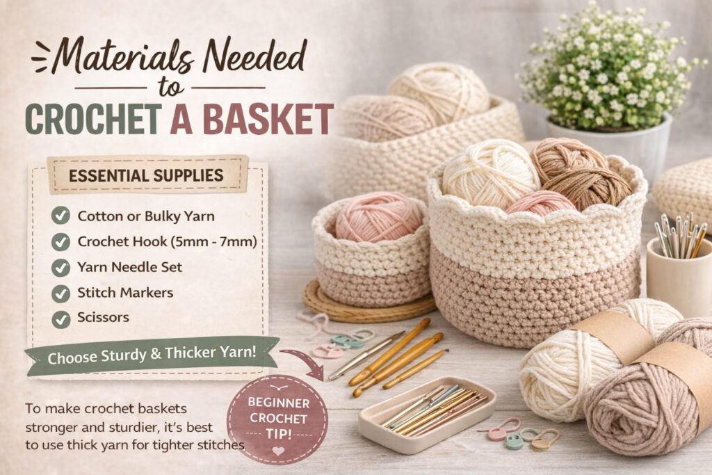 Before starting your crochet basket project, it is important to choose the right materials. Using the correct yarn and tools will make your basket stronger and easier to shape.