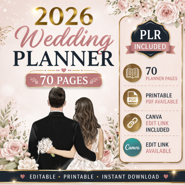 Perfect for brides, wedding planners, and digital product sellers looking for PLR content they can edit and sell as their own.