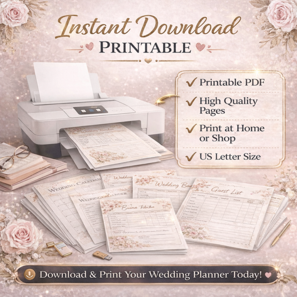 Planning a wedding can be one of the most exciting yet overwhelming experiences in life. With so many details to organize, having a structured planning system can make a huge difference. This 2026 Wedding Planner Printable is designed to help brides and wedding planners stay organized, stress-free, and fully prepared for the big day.
