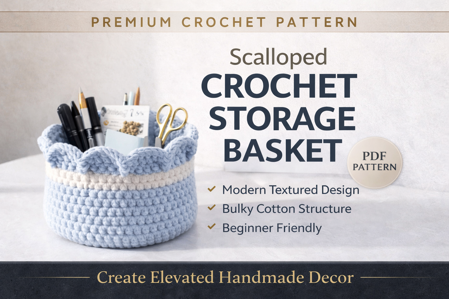 Crochet Basket Pattern PDF | Scalloped Edge Storage Basket | Beginner Friendly Bulky Yarn Organizer | Modern Home Décor DIY