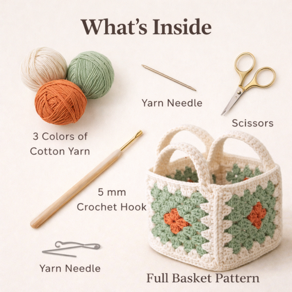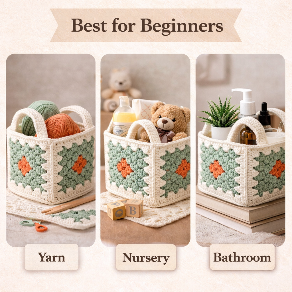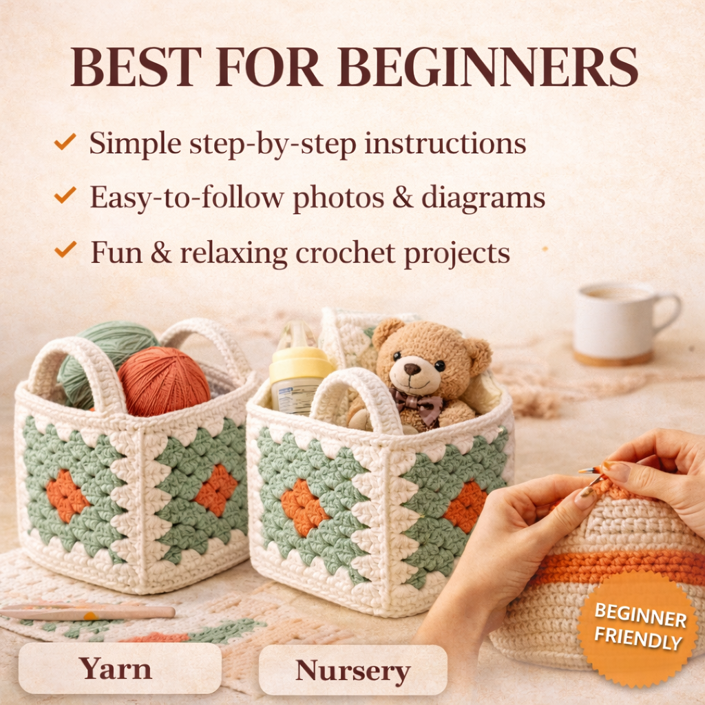 Crochet Granny Square Basket Pattern PDF – Beginner Friendly DIY Storage Basket