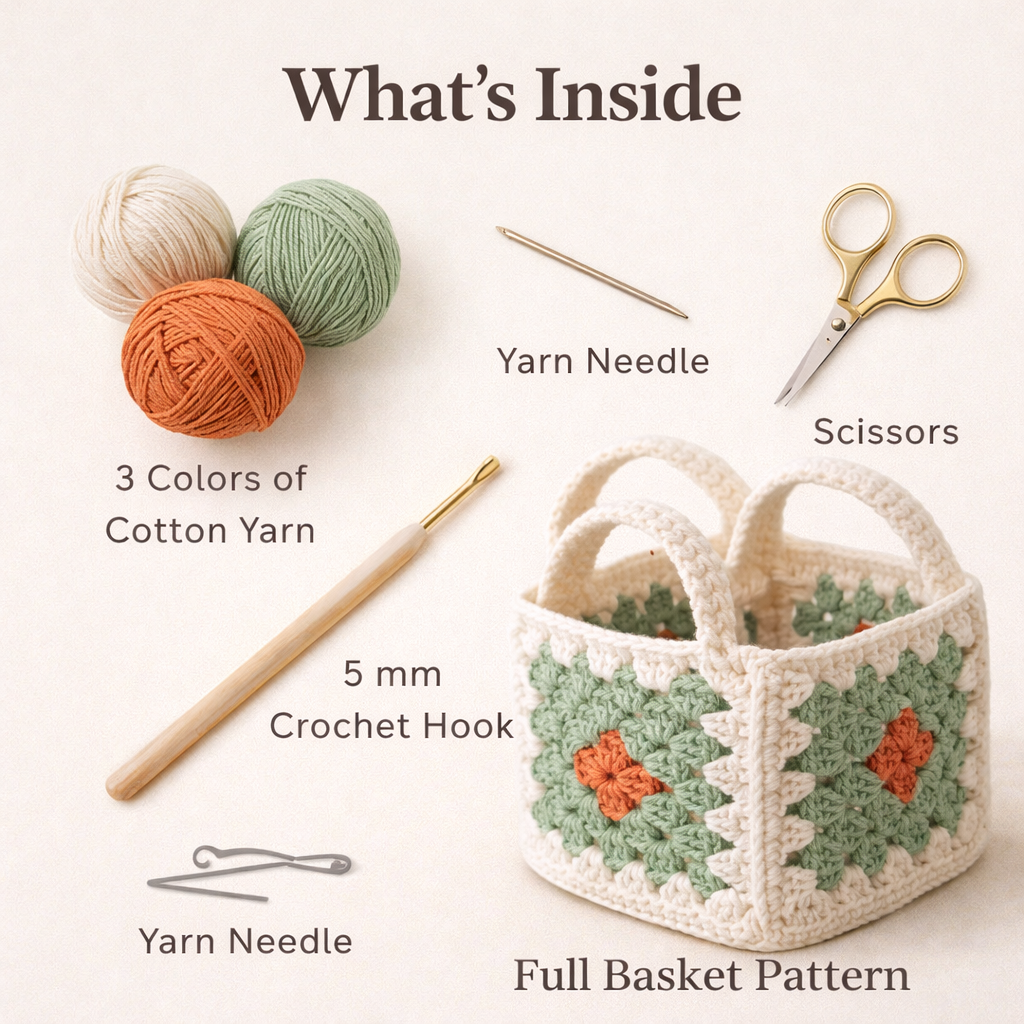 🧺 Crochet Granny Square Basket Pattern PDF