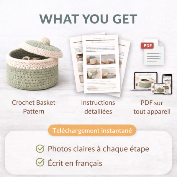 Crochet Basket with Lid Pattern PDF, Panier Crochet avec Couvercle, French Crochet Pattern, Beginner Storage Basket Crochet Tutorial