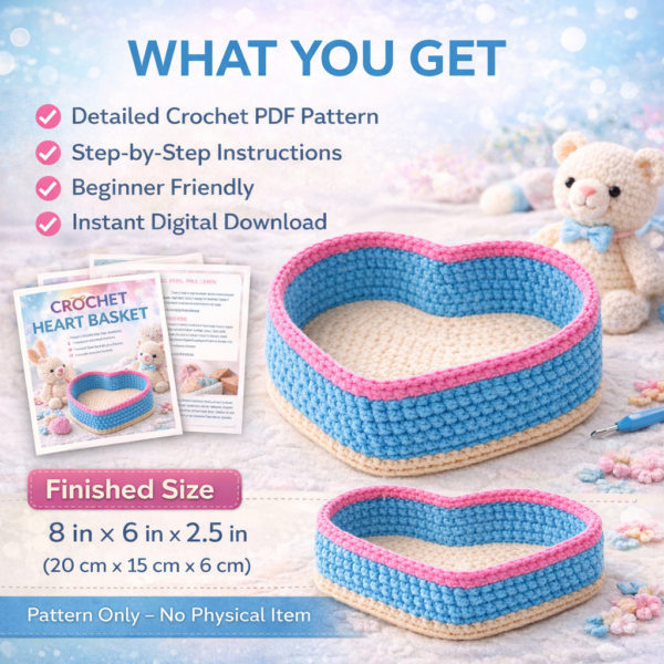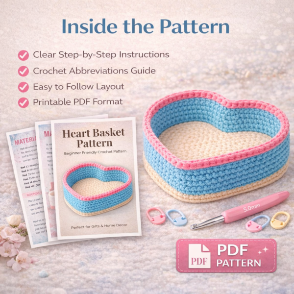 Crochet Heart Basket Pattern PDF – Beginner Friendly Heart Shaped Crochet Basket Pattern