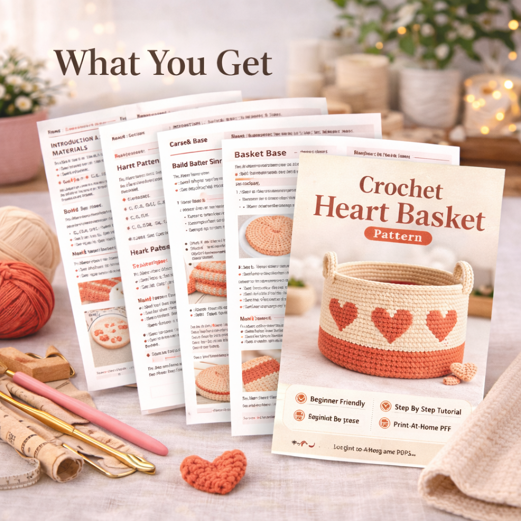 Crochet Heart Basket Pattern PDF – Beginner Friendly Crochet Storage Basket Tutorial