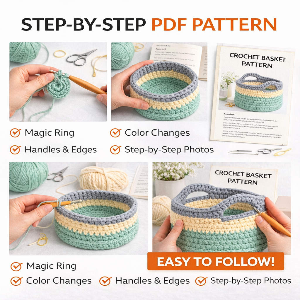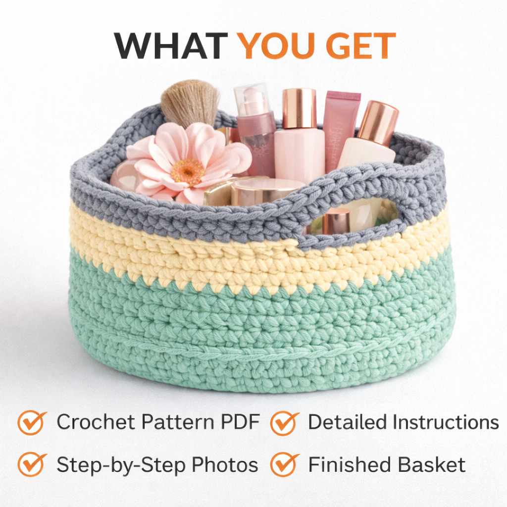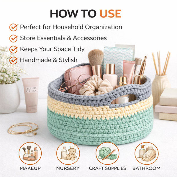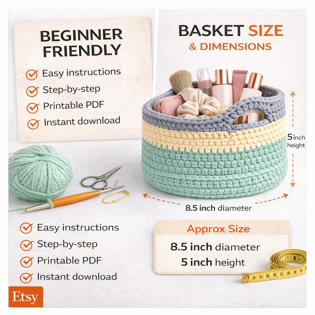 Beginner Friendly Crochet Storage Basket Pattern PDF – Easy Step-by-Step Crochet Basket Tutorial for Home Organization