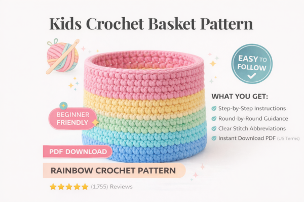 Rainbow Kids Crochet Basket Pattern – Beginner Friendly PDF